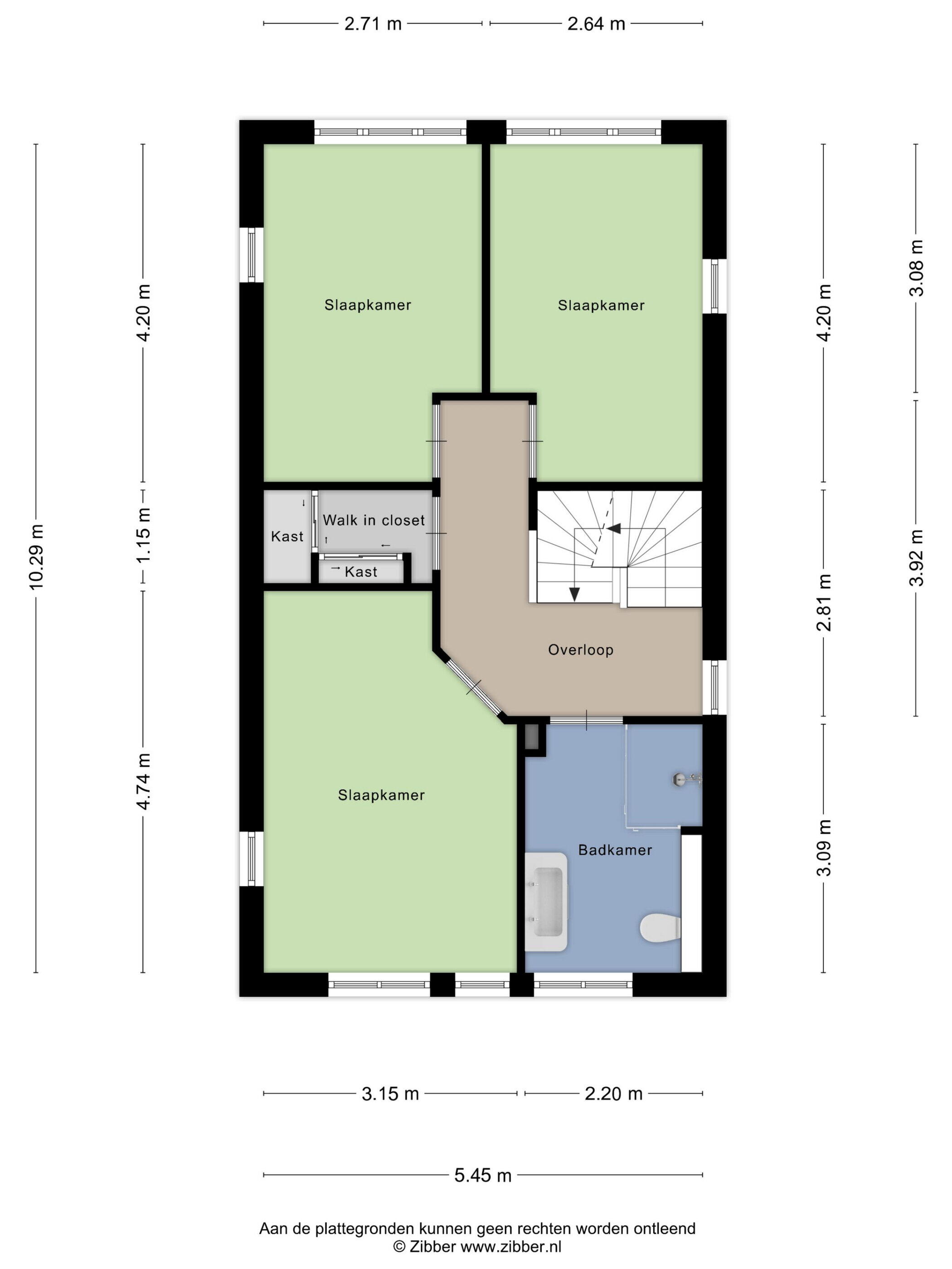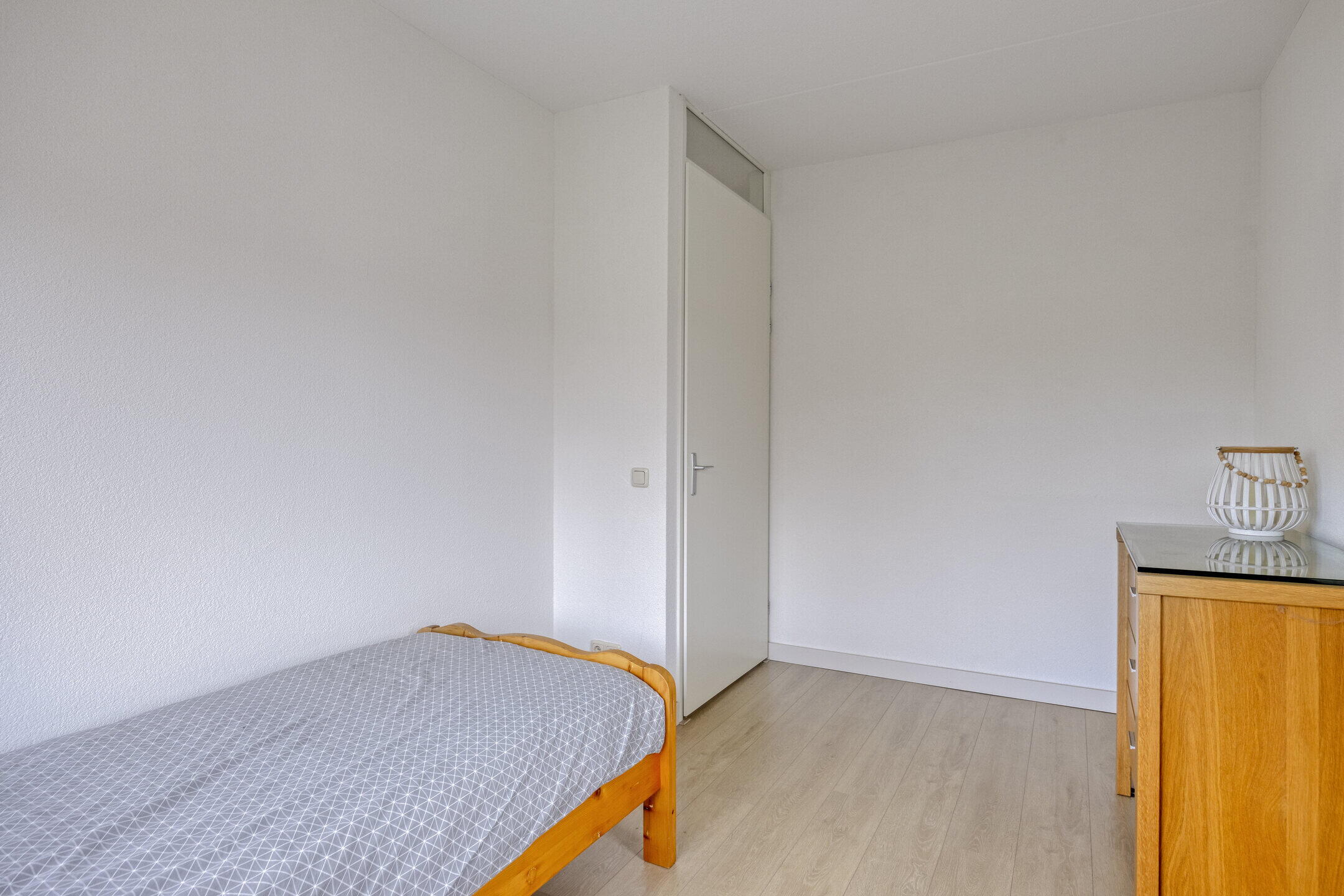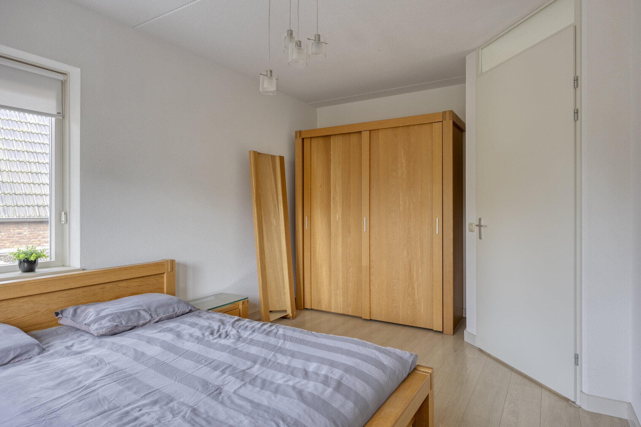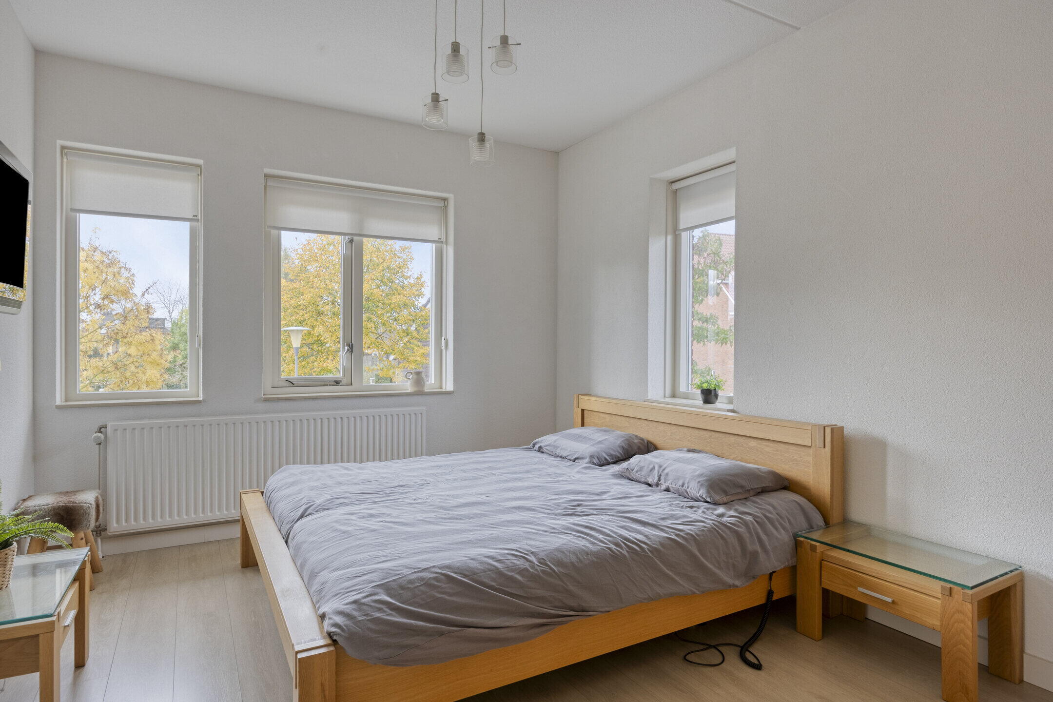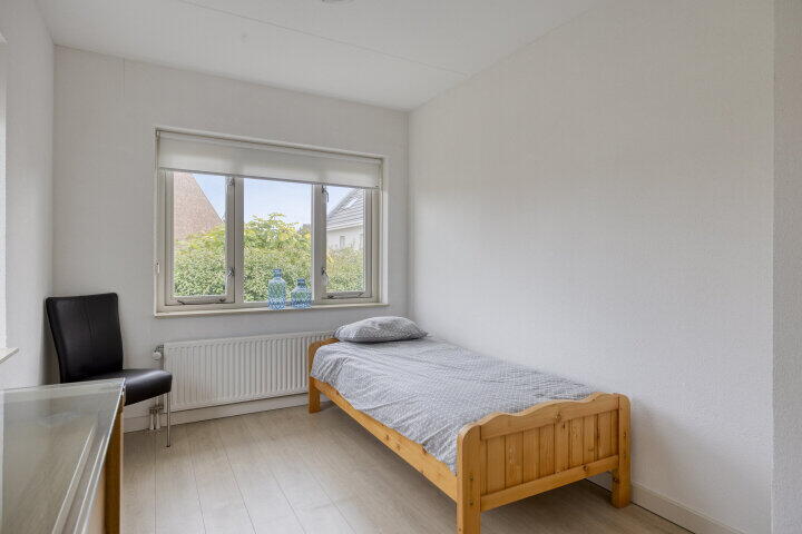 Op de eerste verdieping zijn drie slaapkamers, de walk-in closet en een royale badkamer. De grootste slaapkamer ligt aan de voorzijde en is zo’n 14 m². De andere twee slaapkamers op deze verdieping zijn beide ongeveer 11 m², het zijn mooie rechthoekige vertrekken. In alle kamers en op de overloop ligt dezelfde laminaatvloer.